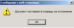 • Нажать кнопку «Отклонить». В результате поступит сообщение о постановке в очередь запроса на формирование и отправку соответствующего сообщения.