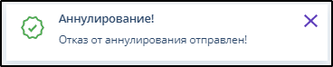 Справа внизу окна на короткое время появится сообщение об отправке подтверждения согласия на аннулирование: