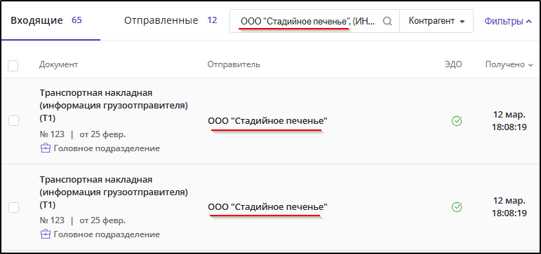 В этом списке нужно указать контрагента, документы от которого или к которому Вы ищете.