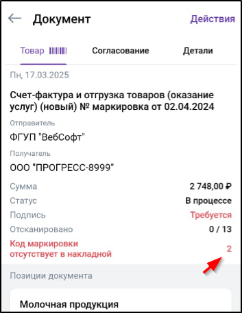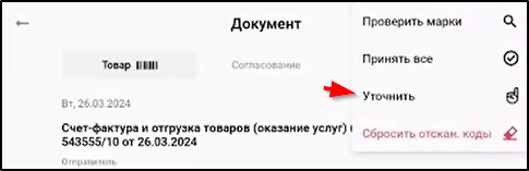 П2.4.7. Сверка или ввод кодов маркировки продукции