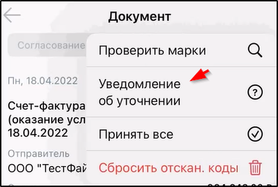 Для перехода на страницу Уведомления об уточнении нужно в меню "Действия" выбрать пункт "Уточнить".